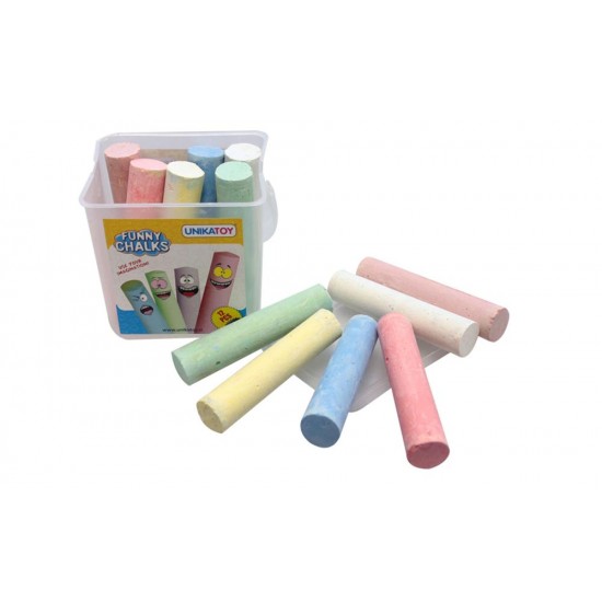 Se potrivesc pentru desen pe orice suprafata grosiera. Scris moale, compozitie naturala pe baza de creta, ghips, apa si pigmenti, fara un miros pronuntat. Urmele de creta se curata usor de pe maini.