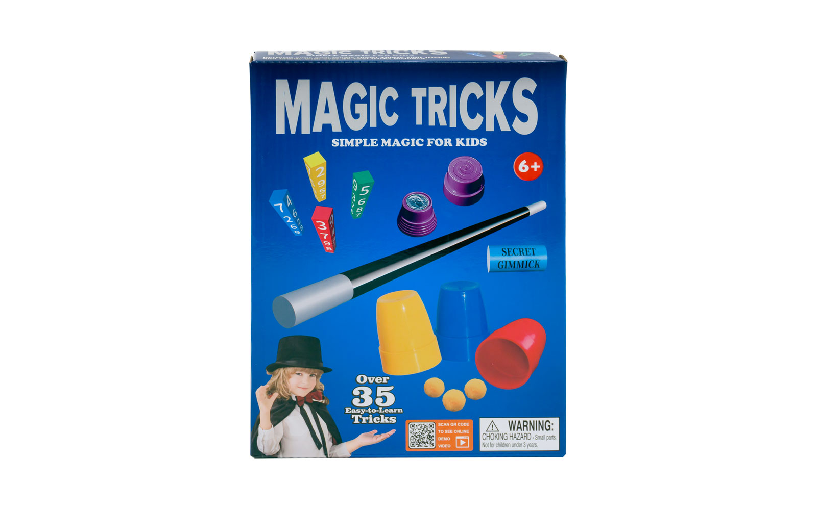 Jocuri Trucuri de magie cu oale. Setul contine 3 oale de culori diferite, o bagheta magica, numere, bunuri magice si multe altele. Cu acest joc distractiv poti crea pana la 35 de trucuri diferite. Fa-ti serile cit mai distractive cu aceste jocuri care iti va dezvolta atentia si imaginatia.