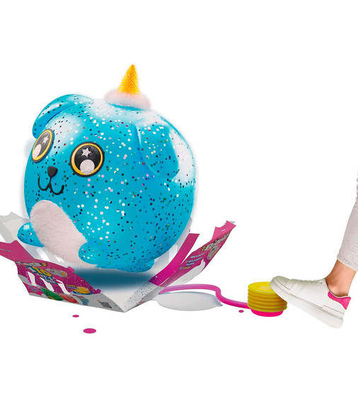 Scoate folia din cutie, deschide usa cu pompa si incepe sa pompezi aer. Jucaria se umfla, cutia se deschide, iar personajul apare cu un efect WOW! Incepe un joc distractiv si bucura-te de o dispozitie buna pentru intreaga zi!