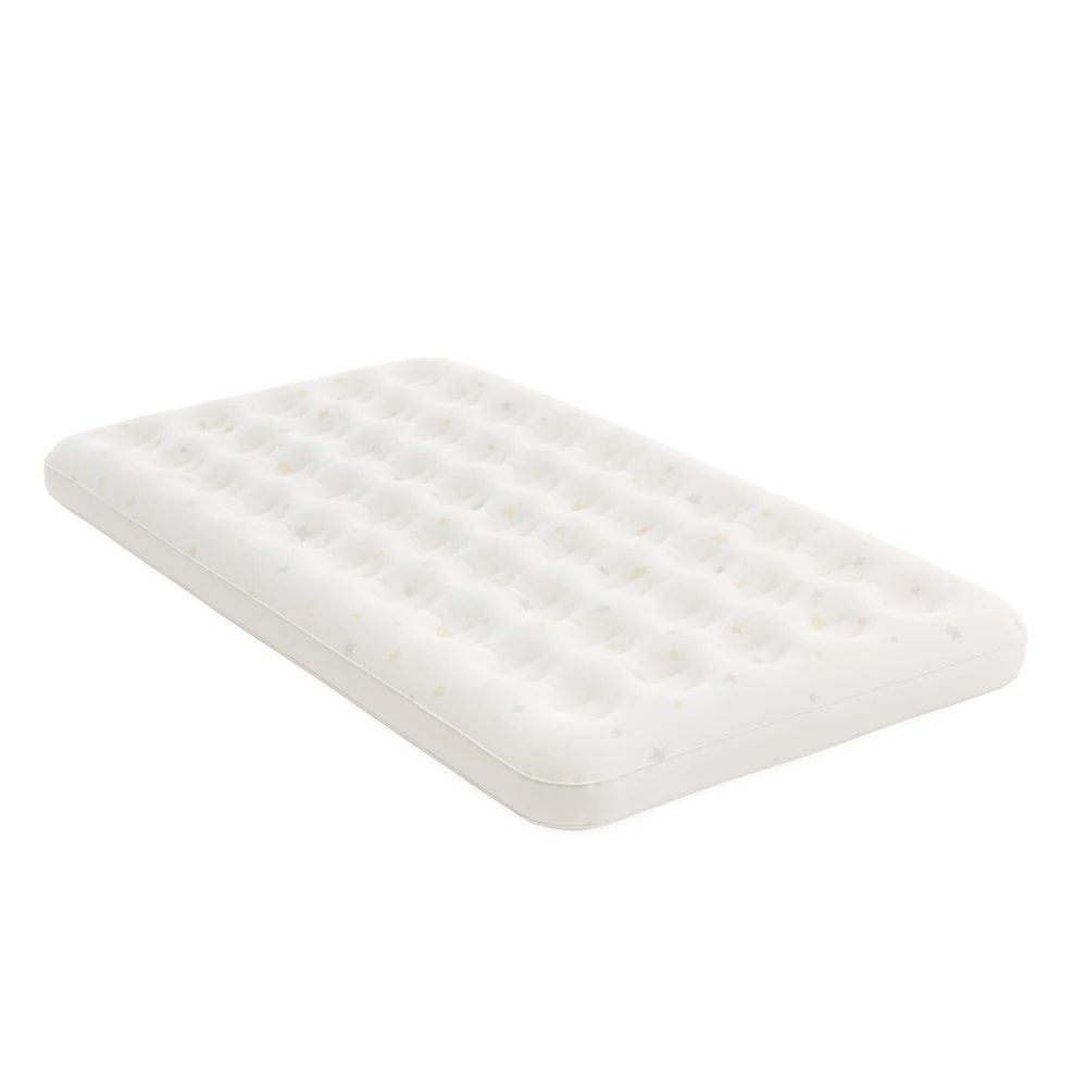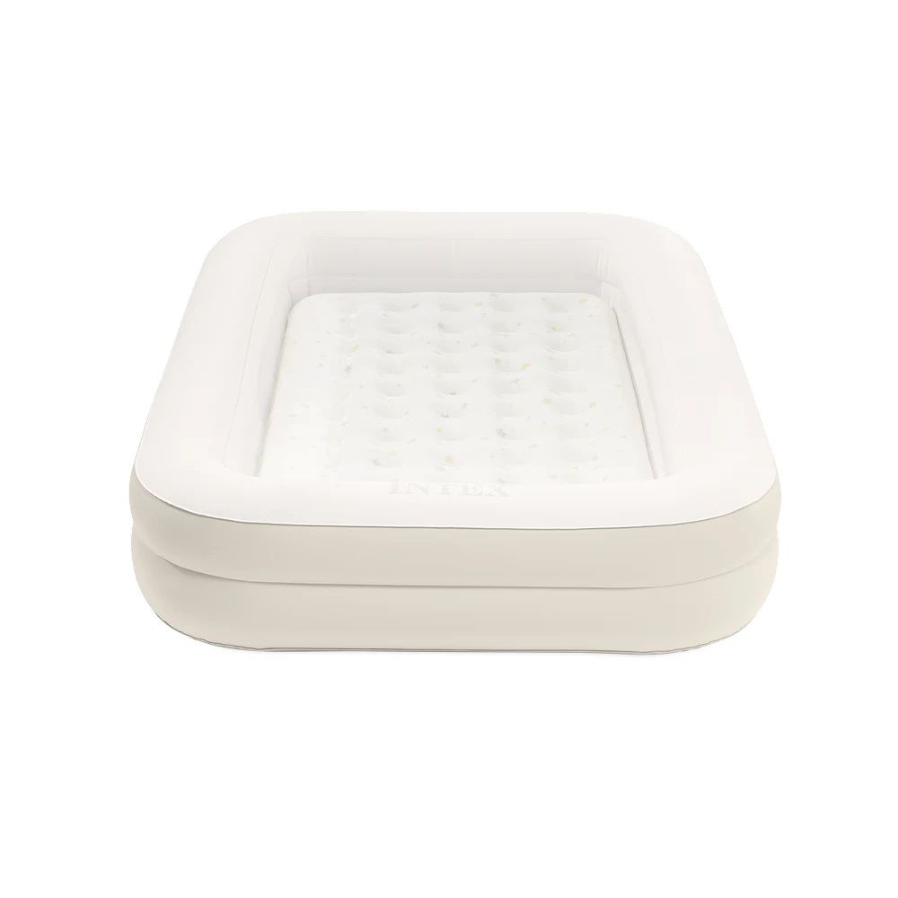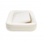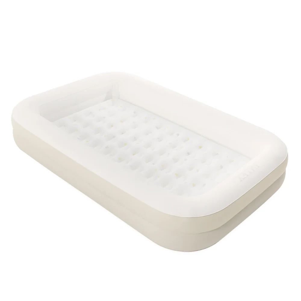 Patul gonflabil Kidz Travel este solutia ideala pentru calatorii, oferind siguranta si confort copiilor cu varsta intre 3 si 6 ani. Acesta este format dintr-un cadru exterior stabil si o saltea interioara detasabila (71 x 132 x 10 cm), care poate fi utilizata si separat. Marginile laterale inalte previn alunecarea accidentala a copilului in timpul somnului. Suprafata de dormit este impermeabila si placuta la atingere. Setul include o pompa manuala pentru umflare rapida si o geanta pentru transport, fiind foarte practic pentru vacante, vizite sau nopti petrecute in afara casei.