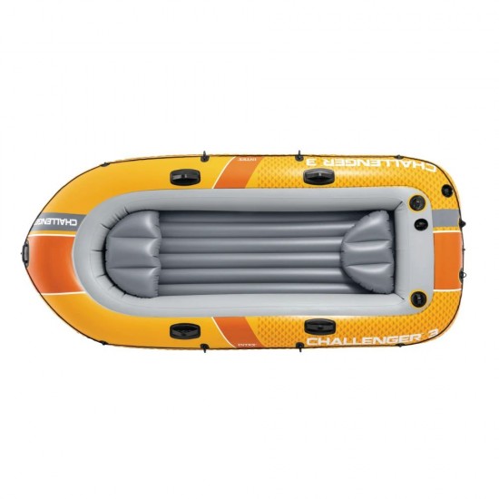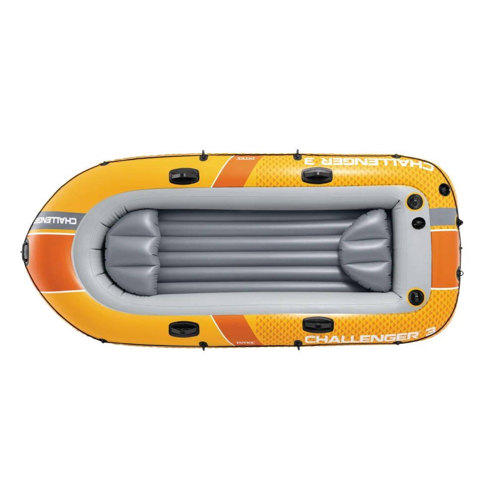 Bucura-te de aventuri pe apa alaturi de prieteni cu barca gonflabila Intex Challenger 3! Proiectata pentru confort si siguranta, aceasta barca spatioasa este ideala pentru plimbari recreative pe lacuri sau ape linistite. Constructia robusta include 3 camere de aer independente pentru o flotabilitate sporita si o podea gonflabila ranforsata care ofera stabilitate. Spre deosebire de modelele mai mici, Challenger 3 vine echipata cu doua scaune gonflabile individuale pentru un confort premium. Setul este complet echipat, permitand o pregatire rapida datorita supapelor Boston de mare debit.