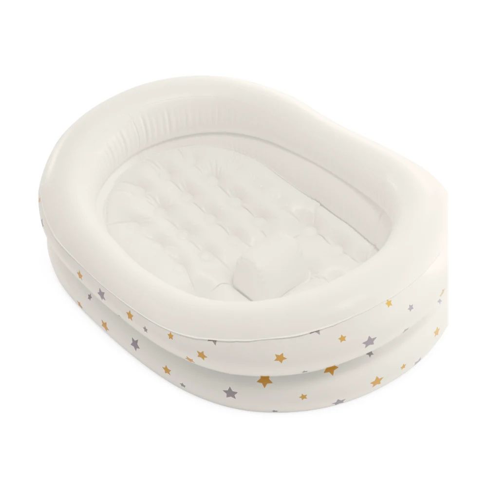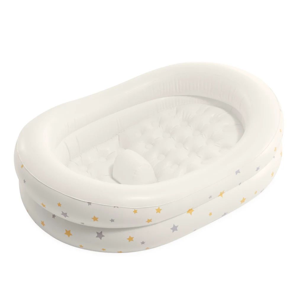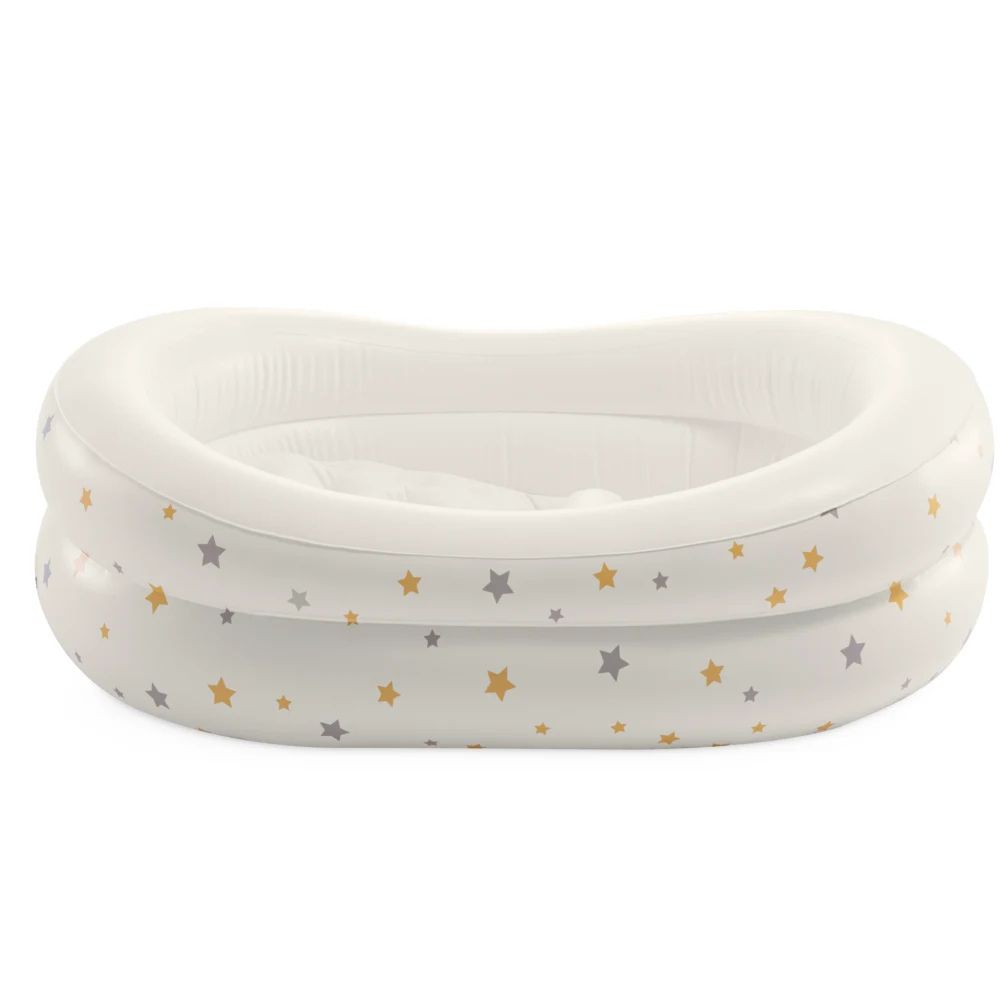 Cadita gonflabila Starry este realizata pentru a oferi confort si siguranta in timpul baii bebelusului. Forma ergonomica si proeminenta de sustinere ajuta la mentinerea unei pozitii stabile, reducand riscul de alunecare. Suprafata interioara este moale si placuta la atingere, fiind potrivita pentru pielea delicata a copilului. Designul gonflabil permite o utilizare practica, fiind usor de umflat, golit si depozitat, ceea ce o face ideala atat pentru acasa, cat si pentru calatorii. Pachetul include o pompa manuala pentru umflare rapida.