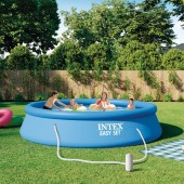 Lasa caldura sufocanta in urma si bucura-te de clipe uluitor de relaxante alaturi de intreaga ta familie, chiar in curtea casei tale! Modelul gigant Intex Easy Set de 396 cm te va surprinde nu doar prin spatiul extraordinar pus la dispozitie, ci mai ales prin felul magic in care se instaleaza singur. Datorita ingineriei autostabile complet remarcabile, tot ceea ce ai de facut este sa intinzi produsul pe un sol perfect drept, sa umfli inelul superior rotativ si sa pornesti robinetul. De restul muncii se va ocupa doar greutatea apei! In aproximativ 10-15 minute, pe masura ce se umple, inelul incepe sa pluteasca, intinzand peretii incet in sus pana cand piscina capata o forma complet inalta si incredibil de stabila. Fara piese de asamblat sau tevi, doar o incantare imediata!