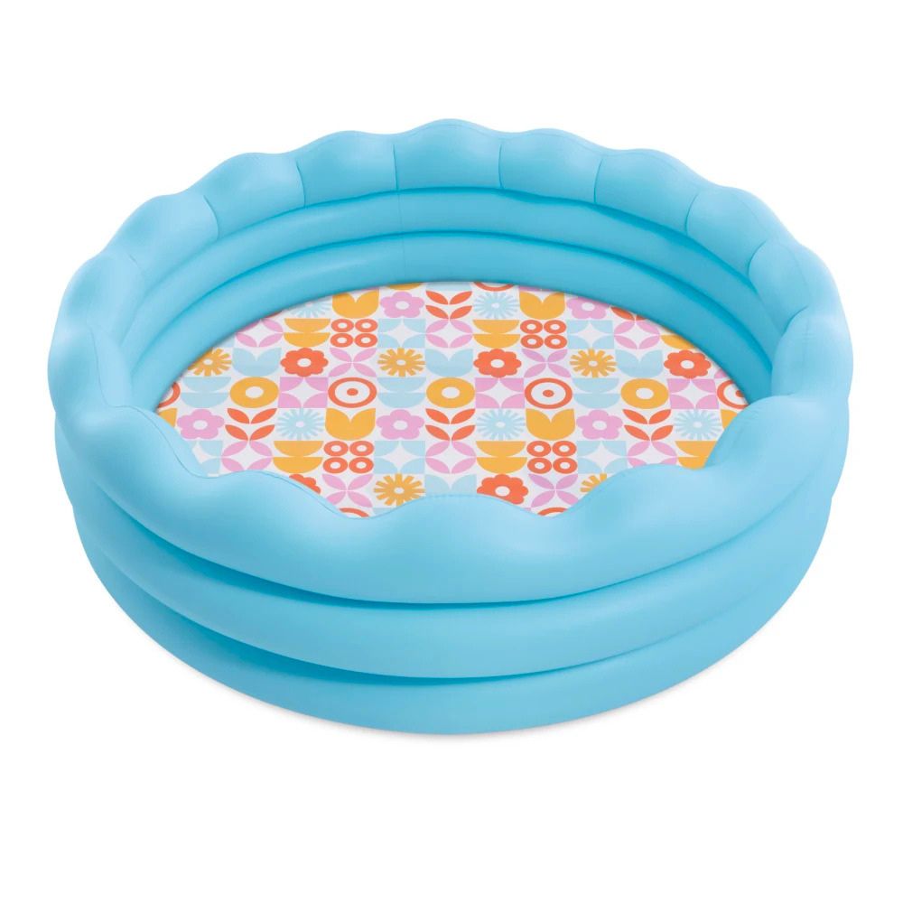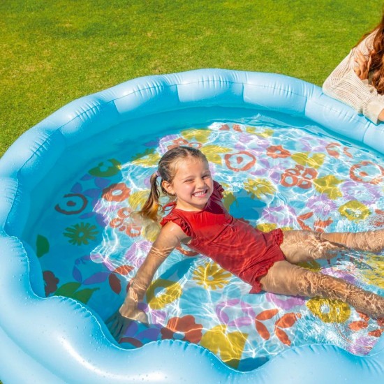 Aceasta piscina se remarca prin designul sau jucaus cu margini ondulate si podeaua decorata cu un model floral retro plin de culoare. Este perfecta pentru zilele insorite de vara, oferind un spatiu generos pentru balaceala. Include o valva de scurgere pentru o golire rapida si usoara la finalul zilei.