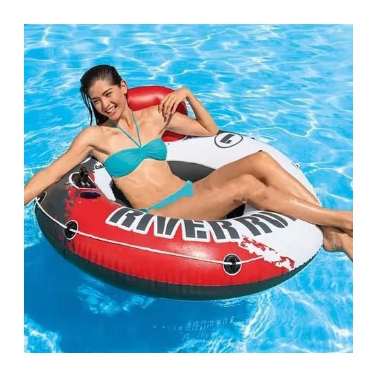 Relaxeaza-te pe apa in cel mai confortabil mod posibil cu cercul gonflabil INTEX "River Run"! Proiectat pentru confort maxim, acest colac include spatar, manere robuste, suport pentru pahar si o baza din plasa pentru racorire naturala. Ideal pentru plimbari pe rau, lac sau piscina.