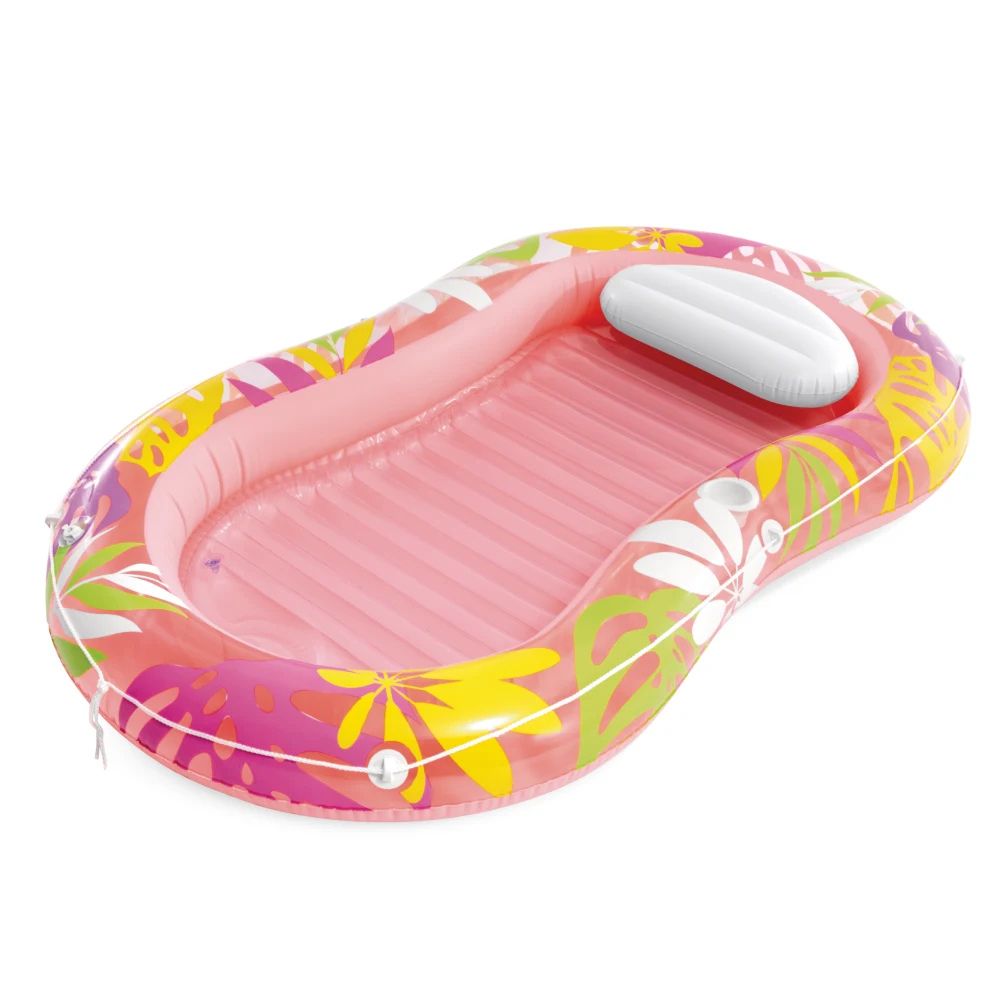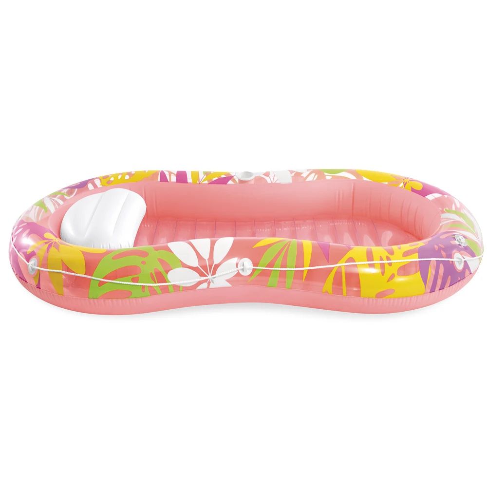 Salteaua-sezlong Tropical Oasis de la Intex este alegerea perfecta pentru zilele insorite, oferind un mix ideal intre confort premium si stabilitate pe apa. Designul ergonomic tip sezlong, completat de perna integrata, asigura o pozitie de relaxare superioara pentru cap si gat. Marginile laterale inaltate ajuta la mentinerea echilibrului, in timp ce suprafata generoasa permite utilizatorului sa se relaxeze in voie. Culorile vibrante si designul tropical o fac usor de remarcat la piscina sau pe mare, fiind un accesoriu durabil si atractiv pentru orice vacanta.