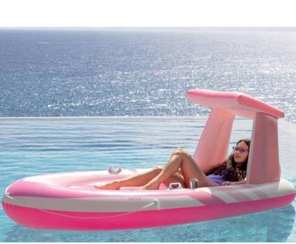 Pluta gonflabila Intex "Pink Paradise Boat Float" este un accesoriu elegant si confortabil pentru vacantele de vara. Perfecta pentru piscina sau relaxare pe apa deschisa. Designul modern si culoarea roz stralucitoare adauga un plus de unicitate vacantei tale.