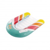 Pluta gonflabila Surf's Up este conceputa special pentru distractia pe apa, fiind ideala pentru piscine, lacuri sau mare in zone cu adancime mica. Dimensiunile compacte si forma stabila o fac usor de manevrat de catre copii, ajutand la mentinerea echilibrului. Cele doua manere solide permit o prindere sigura in timpul jocului, oferind incredere micilor inotatori. Structura este realizata din PVC rezistent, pregatit pentru utilizare repetata in sezonul estival, oferind o suprafata confortabila pentru relaxare sau balaceala.