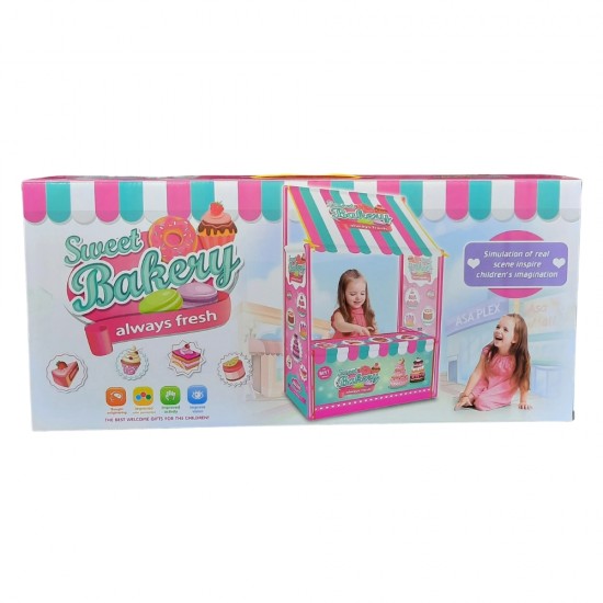 Cortul este usor de montat si de demontat, ceea ce il face ideal pentru a fi folosit atat acasa, cat si in vacante sau la petreceri. Un cadou perfect unde fetitele se vor bucura de ore intregi de distractie in "patiseria" lor personala.