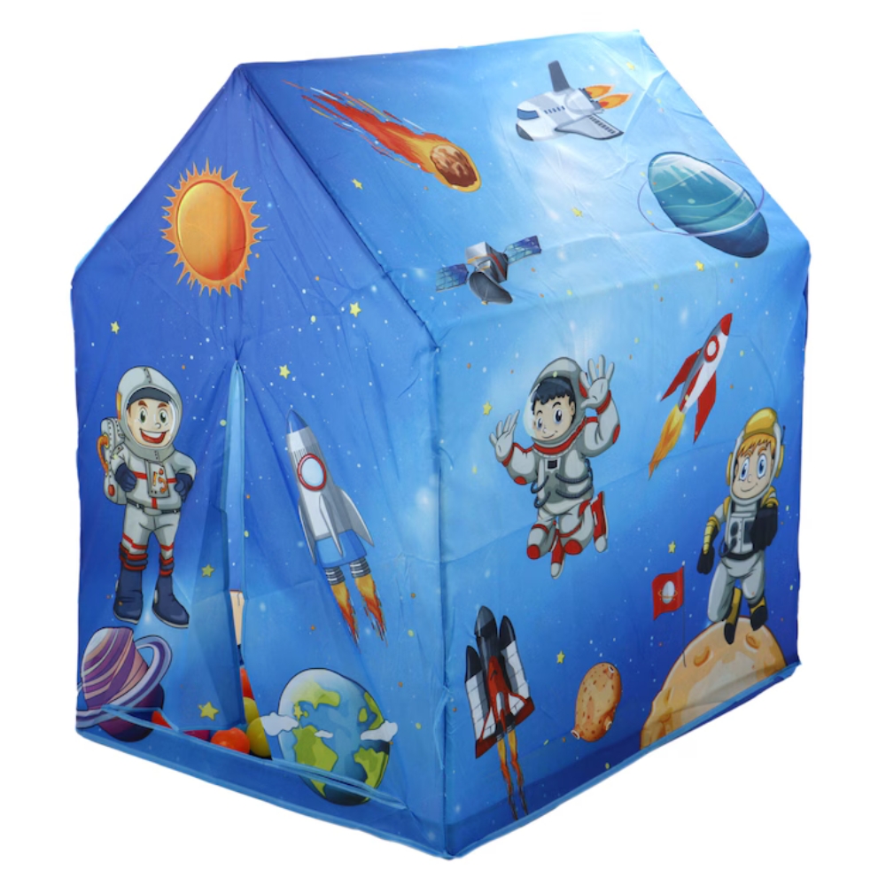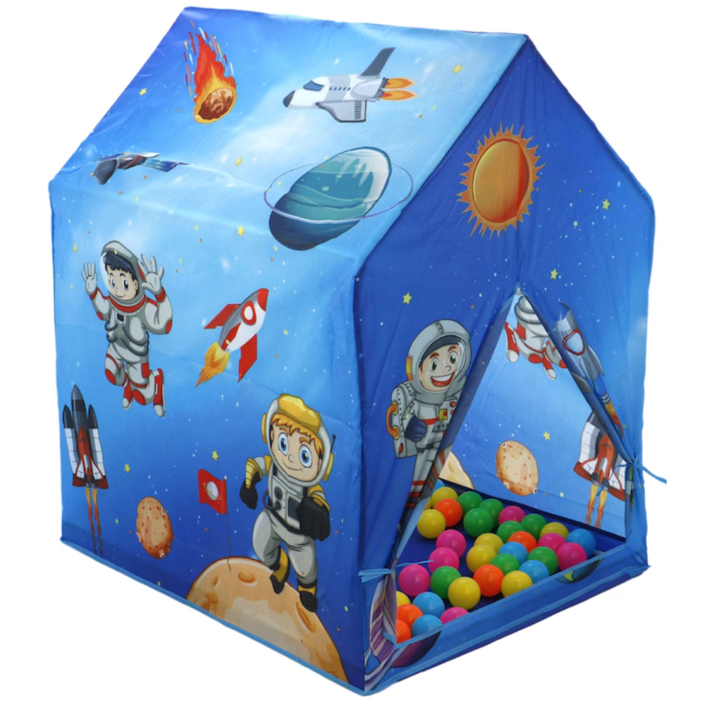 Un loc fascinant pentru micii exploratori care viseaza la aventuri interstelare! Cu un design inspirat din tema spatiului cosmic, acest cort cu 50 de mingi colorate ofera o atmosfera magica, plina de planete, stele si nave spatiale, unde te poti juca si imagina calatorii prin univers.