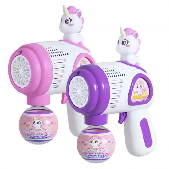 Pistol de facut baloane de sapun Unicorn, cu solutie 100 ml, diverse culori, ZJA361451