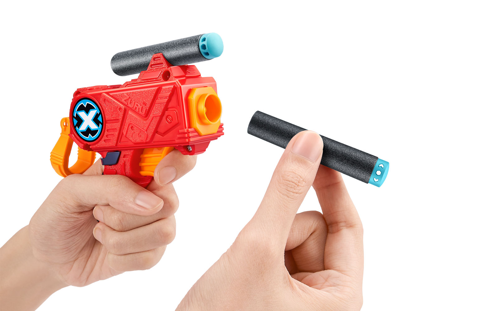 X-Shot Excel Micro are o capacitate de 1 sageata si spatiu de stocare pentru un dart suplimentar deasupra pentru reancarcare rapida si vine cu 8 cartuse pentru a va mentine incarcat toata lupta.