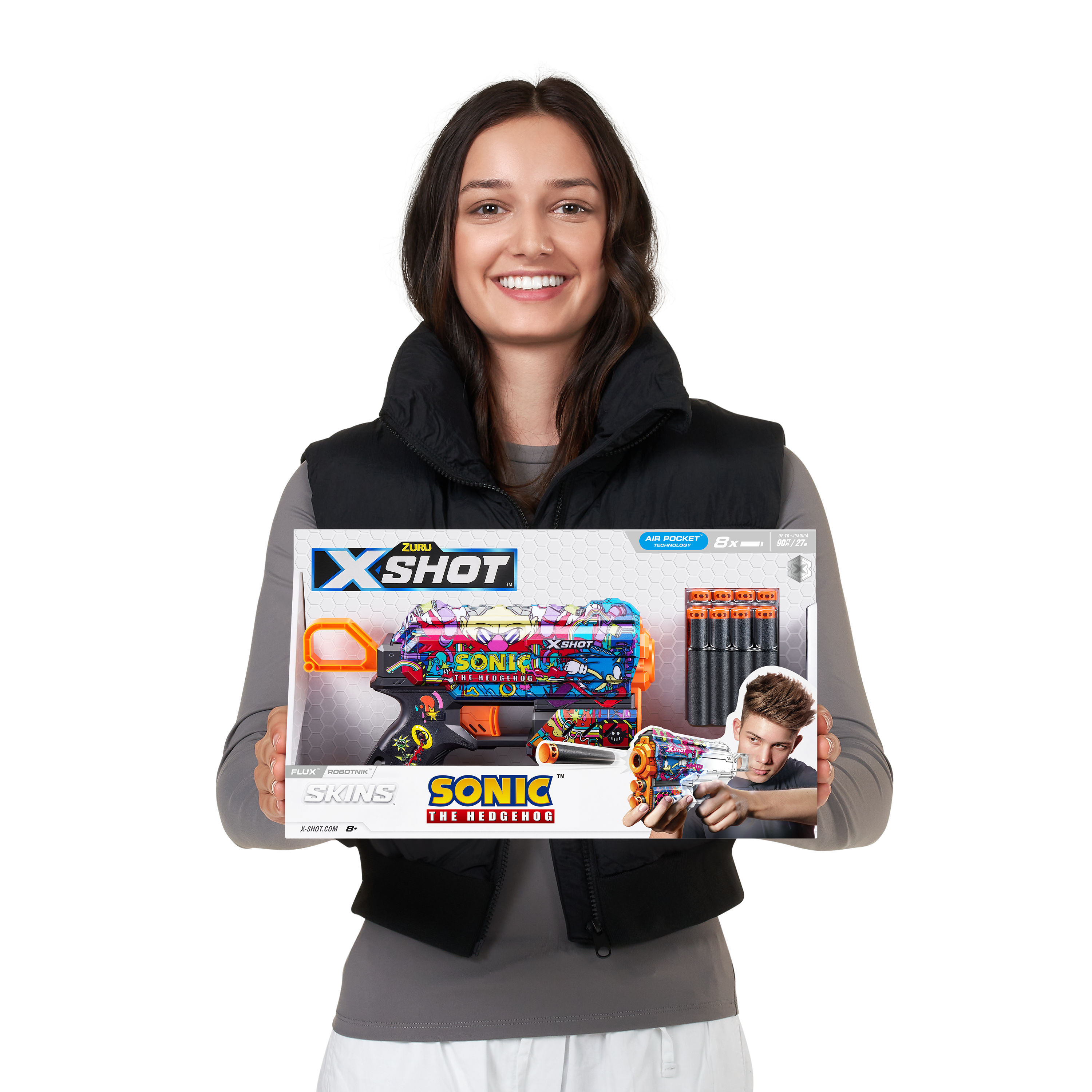 Alege Blasterul X-Shot Skins Flux,Sonic Robotnik si alatura-te luptei! Acest blaster nu trebuie sa lipseasca din colectia ta. Are stocare inferioara pentru sageti, astfel incat sa il puteti reincarca rapid si sa va intoarceti in lupta. X-Shot Skins dispun de noua tehnologie Air Pocket pentru impuscaturi mai rapide, mai lungi si mai precise.