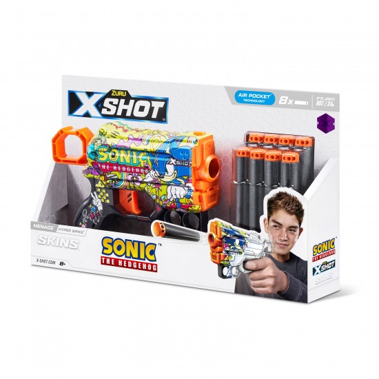 Pistol X-Shot Skins Menace, Sonic, Hyper Spike, 8 cartuse