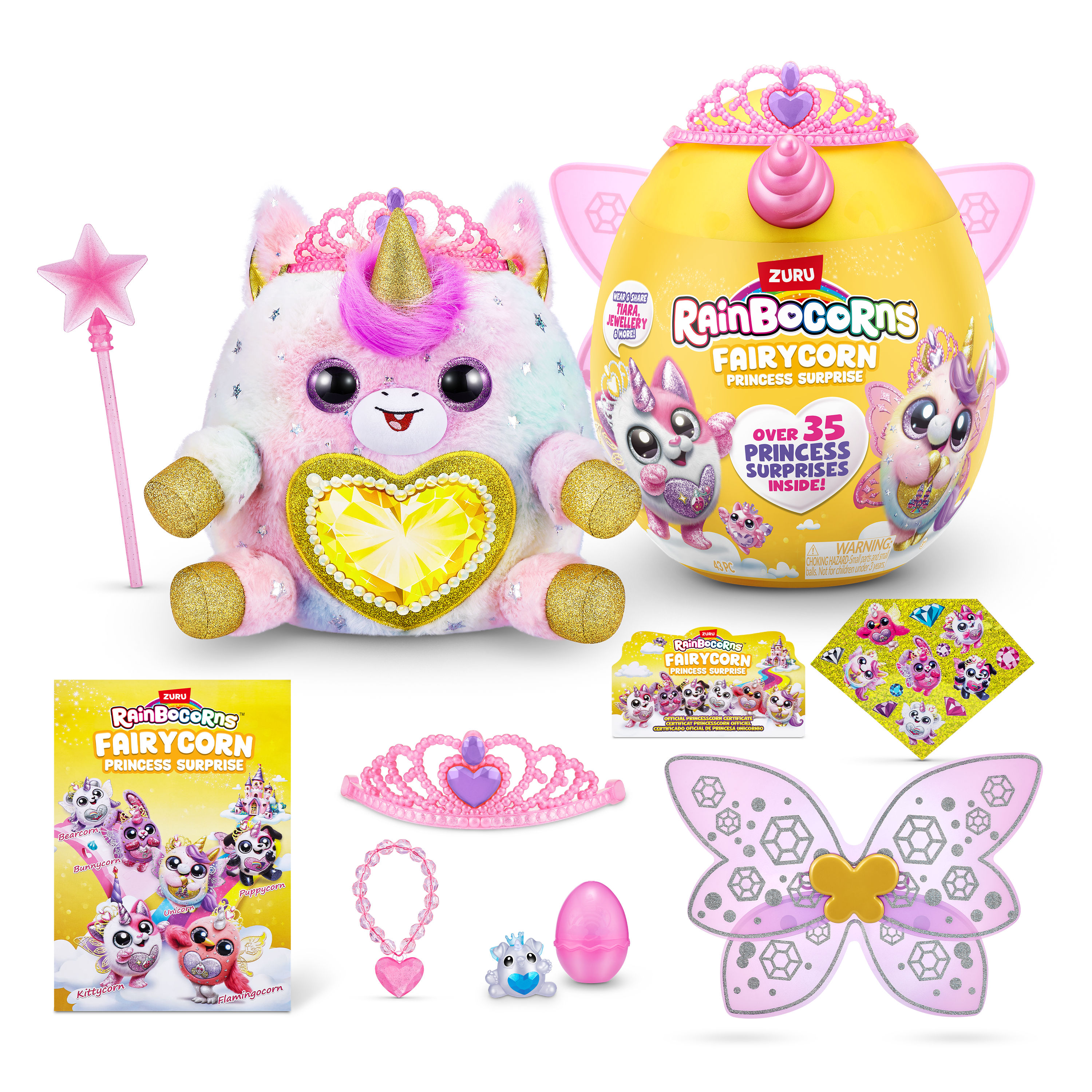 Unicornul Rainbocorns, Ruby este acum si mai special, avand aripi si fiind pictat in cele mai frumoase pasteluri. Ascunde surprize magice care te vor purta pe taramuri fermecate, unde jocul este mult mai distractive. In interiorul oului vei gasi 10 surprize minunate, printre care un Fairycorn, o inima detasabila, aripi, un boo-boocorn, slime care isi schimba culoarea, stickere, ghidul colectionarului si multe alte surprize. Descopera toate accesoriile din interiorul oului si combina-le pentru a avea parte de o distractie superba!