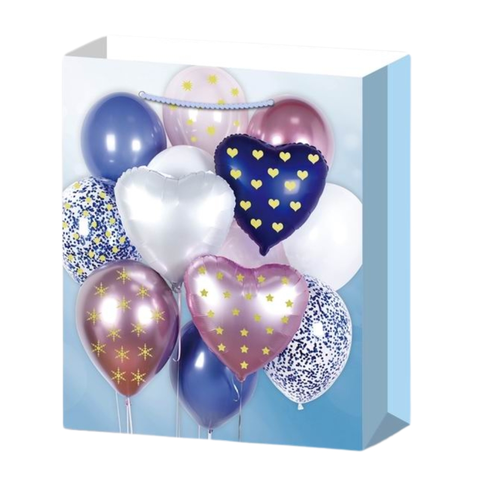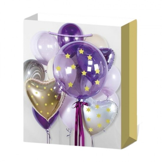 Punga pentru cadou Baloane Happy Birthday cu sclipici auriu 30x12x41,5 cm 4 tipuri, ZJA361890