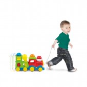 Trenulet muzical cu bile si ciocan. Trenuletul are un vagon si 3 bile colorate. Dispune de buton on/off si are diferite melodii insotite de lumini. Bilele pot fi stocate in interiorul vagonului. Acestea se pot impinge cu ciocanul prin locurile speciale. De asemenea are si ata de tras.