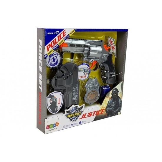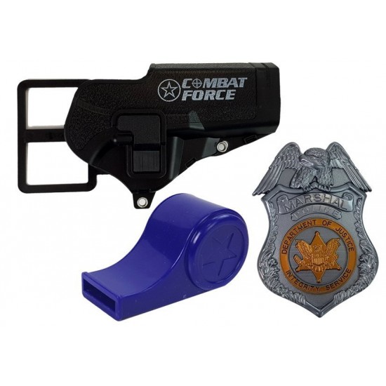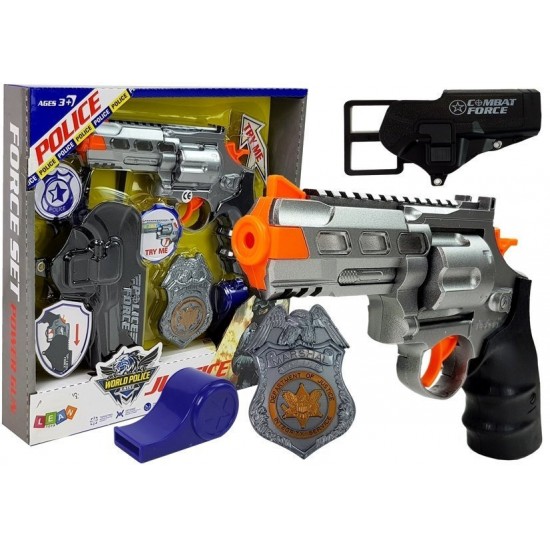 Set Politie cu sunete si lumini, pistol 20 cm, insigna, fluier, toc