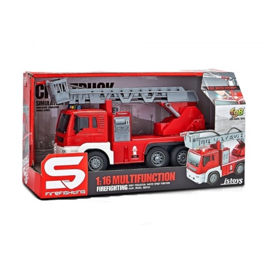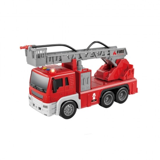 Camionul de pompieri cu scara 1:16 este o versiune in miniatura a unui camion real. A fost proiectat cu atentie la fiecare detaliu, usile se deschid, sunetul si luminile realiste fac ca distractia sa fie cat se poate de autentica. Jucaria asigura un mecanism de frictiune, care ii permite sa se deplaseze inainte dupa ce este impinsa.