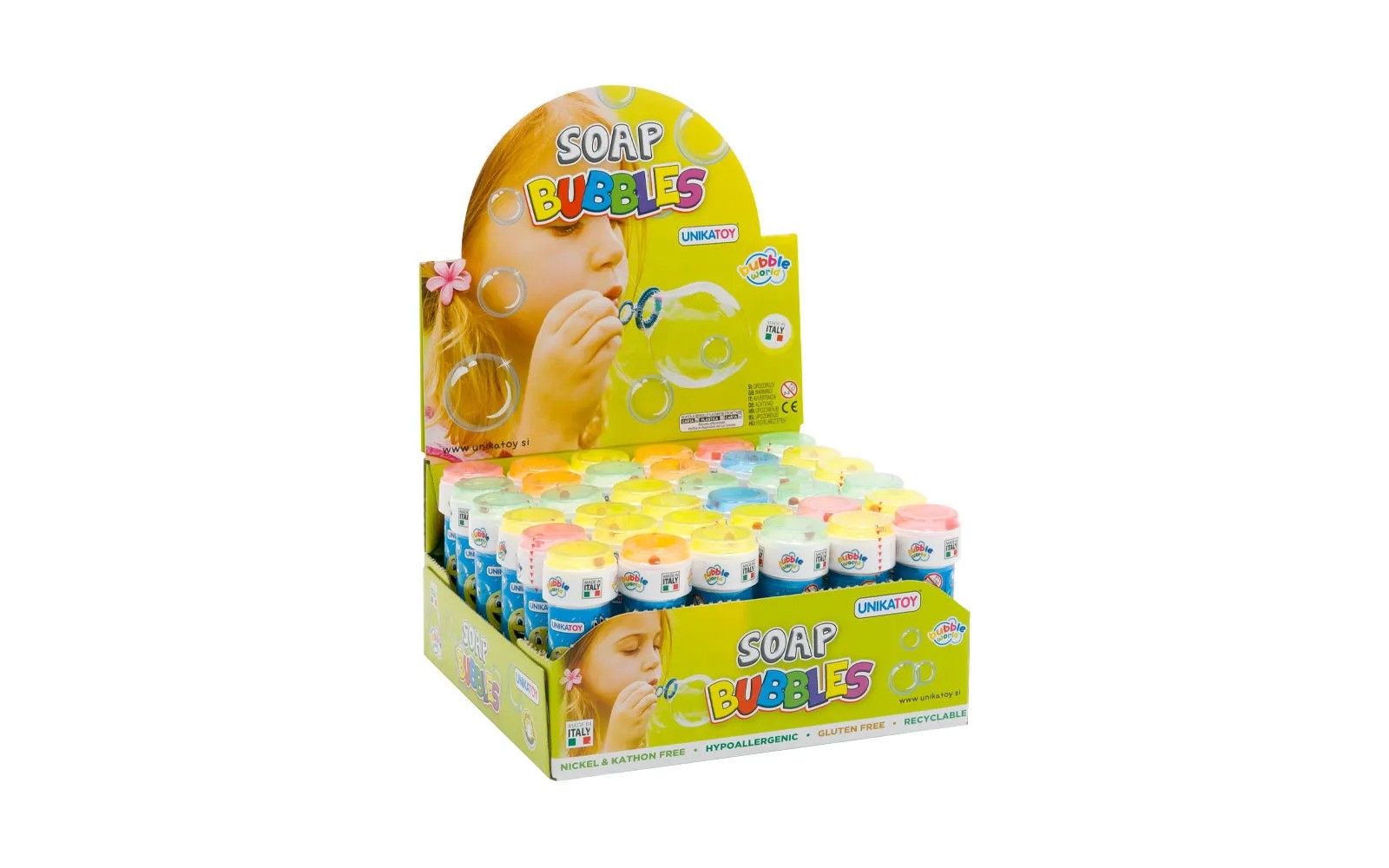 Dulcop / Unikatoy 60 ml – Lichid pentru baloane de sapun este o solutie clasica pentru bule de sapun conceputa pentru joaca distractiva in aer liber. Acest lichid de 60 ml permite copiilor sa sufle bule de sapun usoare si colorate care plutesc in aer, oferind momente de bucurie si distractie pentru cei mici si intreaga familie.