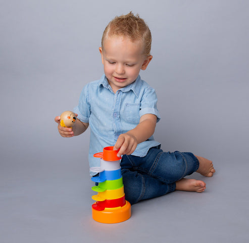 Piramida Turn Multicolora este conceputa pentru distractie si joaca utila.