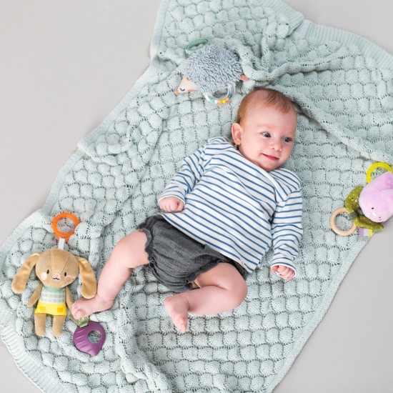 Jucaria este realizata din tesaturi de inalta calitate cu diferite texturi, ceea ce favorizeaza dezvoltarea senzoriala a bebelusului.