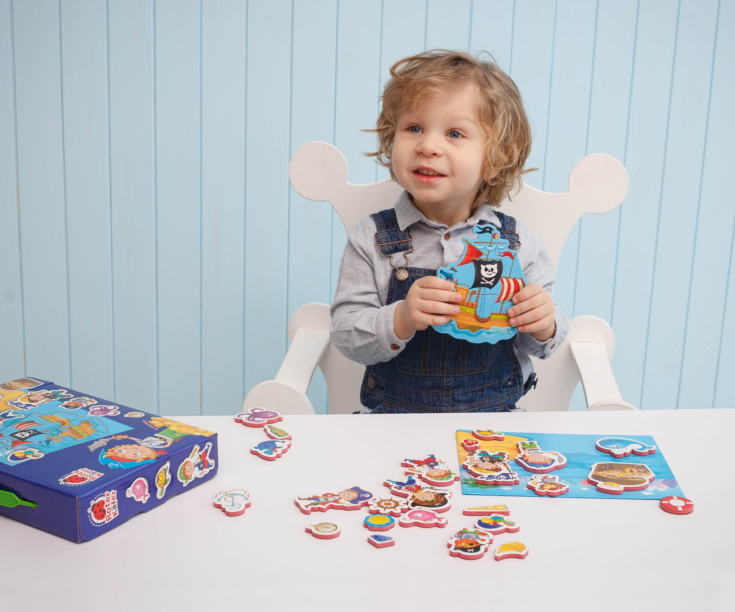 Asezati magnetii voluminosi pe o tabla speciala, creati-va propriul complot si creati imagini luminoase si originale!