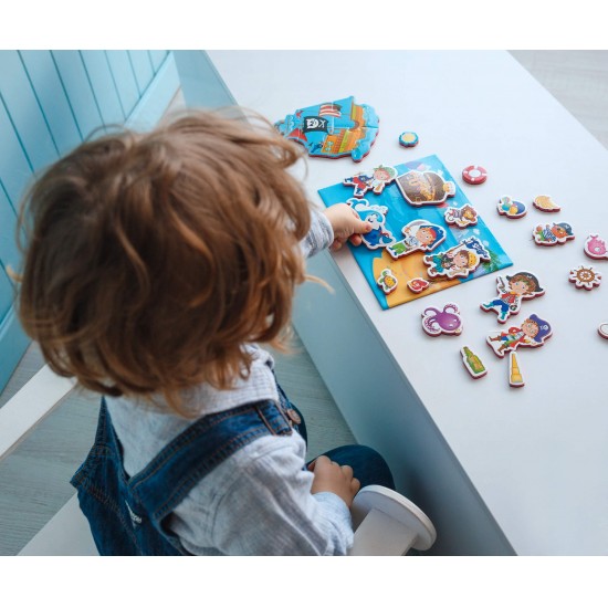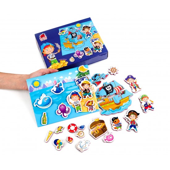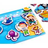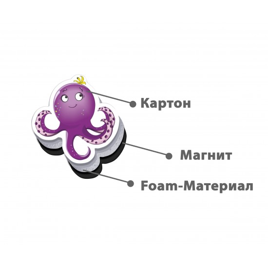 Continutul pachetului: 28 de magneti tematici, tabla magnetica. Confectionat din materiale polimerice.
