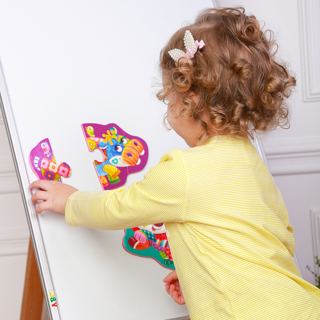 Puzzle-urile sunt formate din piese mari si toate piesele sunt foarte usor de tinut in mana de catre un copil. Bebelusul trebuie sa combine piesele pentru a forma imaginea completa. Personajele haioase ii vor deveni primii prieteni. Piesele sunt magnetice, perfecte pentru frigider sau o tabla magnetica. Procesul de joc antreneaza gandirea logica, imaginatia, perceptia spatiala si abilitatile motorii fine! Copilul se dezvolta prin joaca. Confectionat din materiale polimerice.