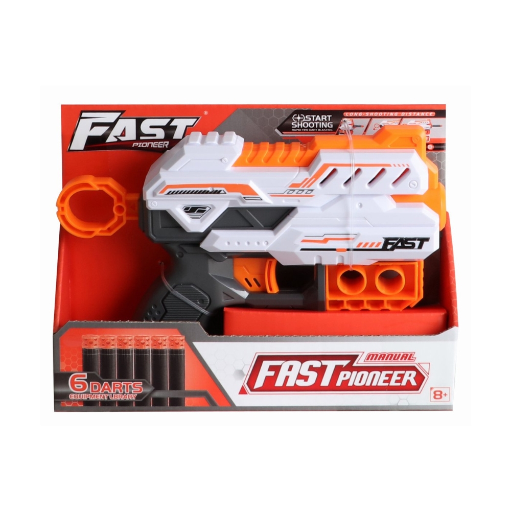 Blaster de jucarie manual cu gloante din spuma, 6 proiectile, Fast Pioneer