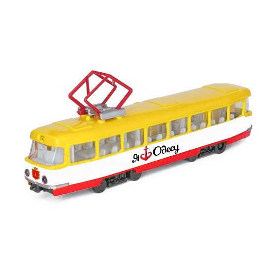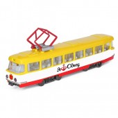 Modelul metalic al unui tramvai urban este cat se poate de aproape de prototipul sau real. O astfel de jucarie va fi o adevarata descoperire pentru un copil. Tramvaiul este echipat cu usi de deschidere, mecanism inertial, permitindu-i sa se miste "de la sine".