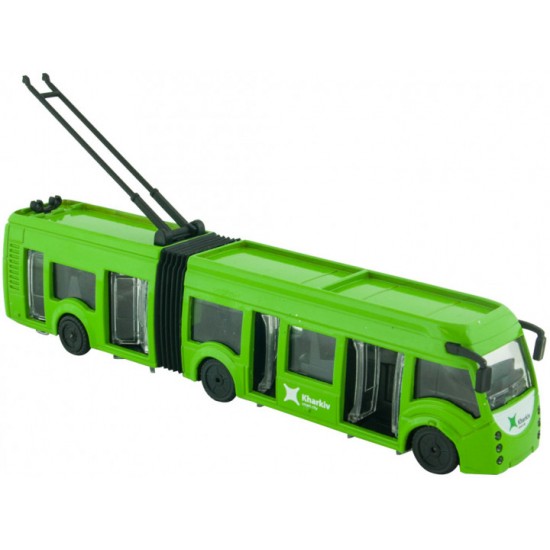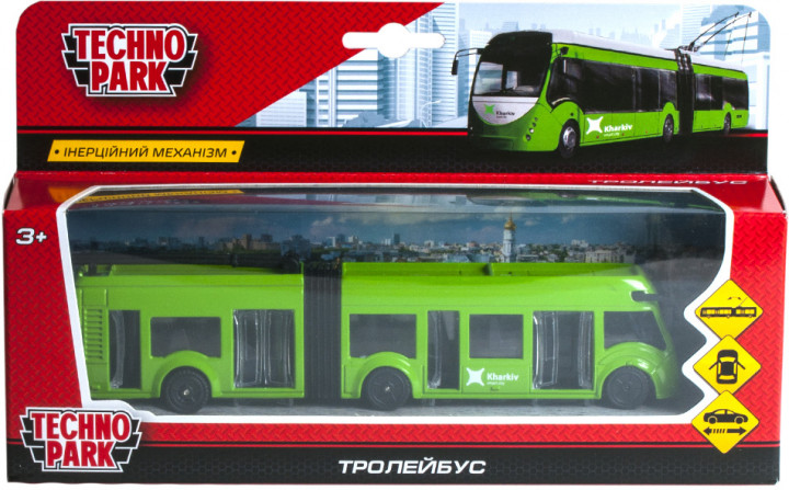 Jucaria model auto Troleibuz HARKOV - o descoperire minunata pentru orice baiat iubitor de vehicule de joc si anume de transportul public. Troleibuzul este echipat cu un mecanism inertial care ii permite sa se deplaseze pe cont propriu si il face mai realist. Prin geamurile transparente puteti vedea interiorul cu scaune pentru pasageri. Joaca cu modelele auto Technopark largeste orizontul de cunoastere si dezvolta perceptia spatiului inconjurator. Recomandat copiilor peste 3 ani.Confectionat din metal si mase plastice.