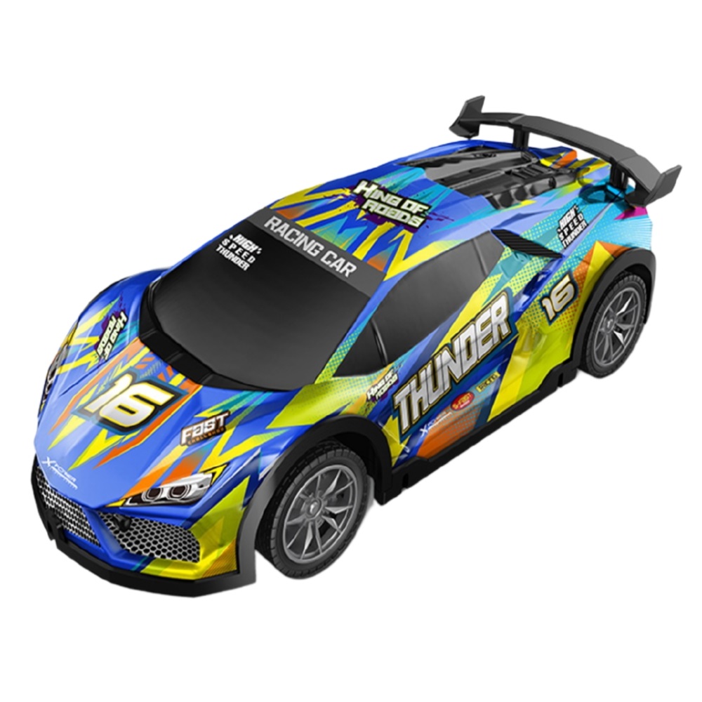 O masina cu telecomanda, inovatoare, conceputa pentru a oferi copiilor o experienta de joc dinamica si captivanta. Aceasta dispune de un sistem RC de control de la distanta care iti permite sa o manevrezi cu usurinta pe diverse tipuri de suprafete. Designul sau elegant, cu un corp luminos de culoare albastra, adauga o estetica spectaculoasa, facand-o sa iasa in evidenta chiar si in intuneric.