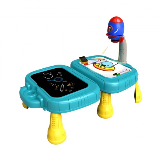Un set educativ si distractiv, care combina desenul cu proiectia, oferind o experienta interactiva si creativa. Masuta este conceputa sub forma unei valize portabile, ceea ce face ca setul sa fie usor de transportat si de depozitat. Setul include un proiector care poate afisa diverse imagini sau desene pe suprafata masutei.