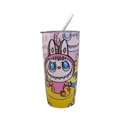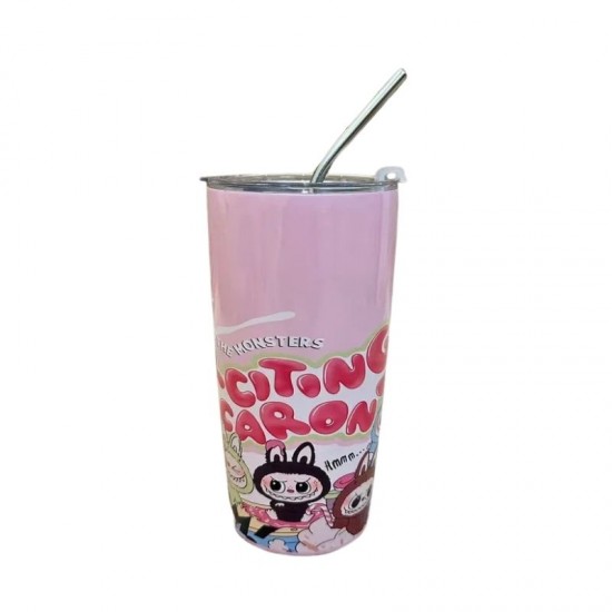 Termos Lububu cu design colorat, capac si pai metalic, 500 ml