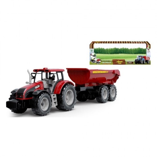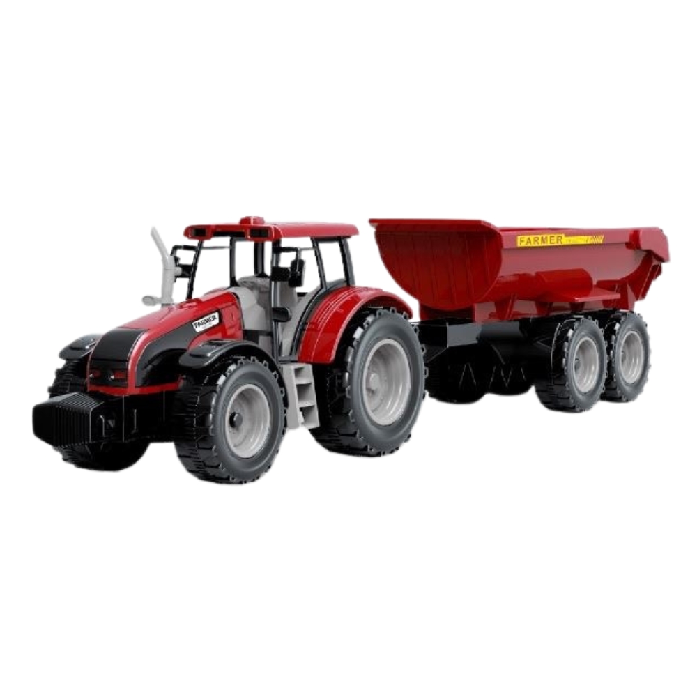 Acest Tractor cu remorca, este o jucarie captivanta, perfecta pentru micii fermieri! Acest tractor se misca datorita mecanismului de frictiune, care permite miscarea usoara dupa o simpla impingere.