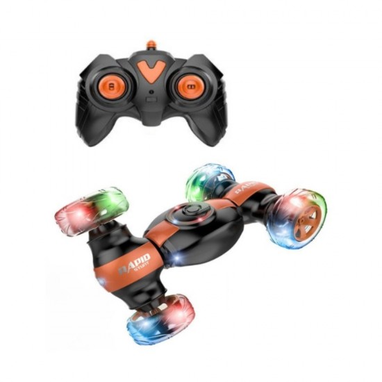 Masina Stunt cu RC, sunete, lumini, rotatie 360, acumul. 3.7V, oranj, ZJA355670