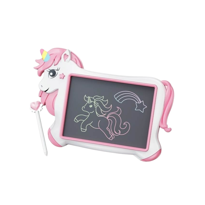 Stimuleaza creativitatea copilului tau cu aceasta adorabila tableta cu ecran LCD color in forma de unicorn - perfecta pentru desen, scris si invatare prin joaca!