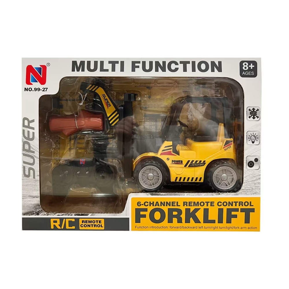 Stivuitorul cu telecomanda este un vehicul de jucarie interactiv, ideal pentru copiii pasionati de masini si tehnologie. Acesta dispune de functii variate, care includ miscarea inainte, inapoi, rotirea si ridicarea bratului stivuitorului, toate controlate prin telecomanda. Echipat cu lumini, acest stivuitor devine si mai atractiv si realist.