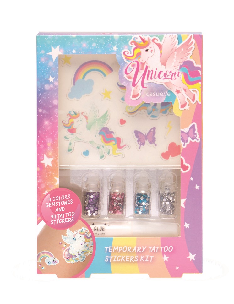 Set cu tatuaje temporare 24 buc. si sclipici Casuelle Unicorn