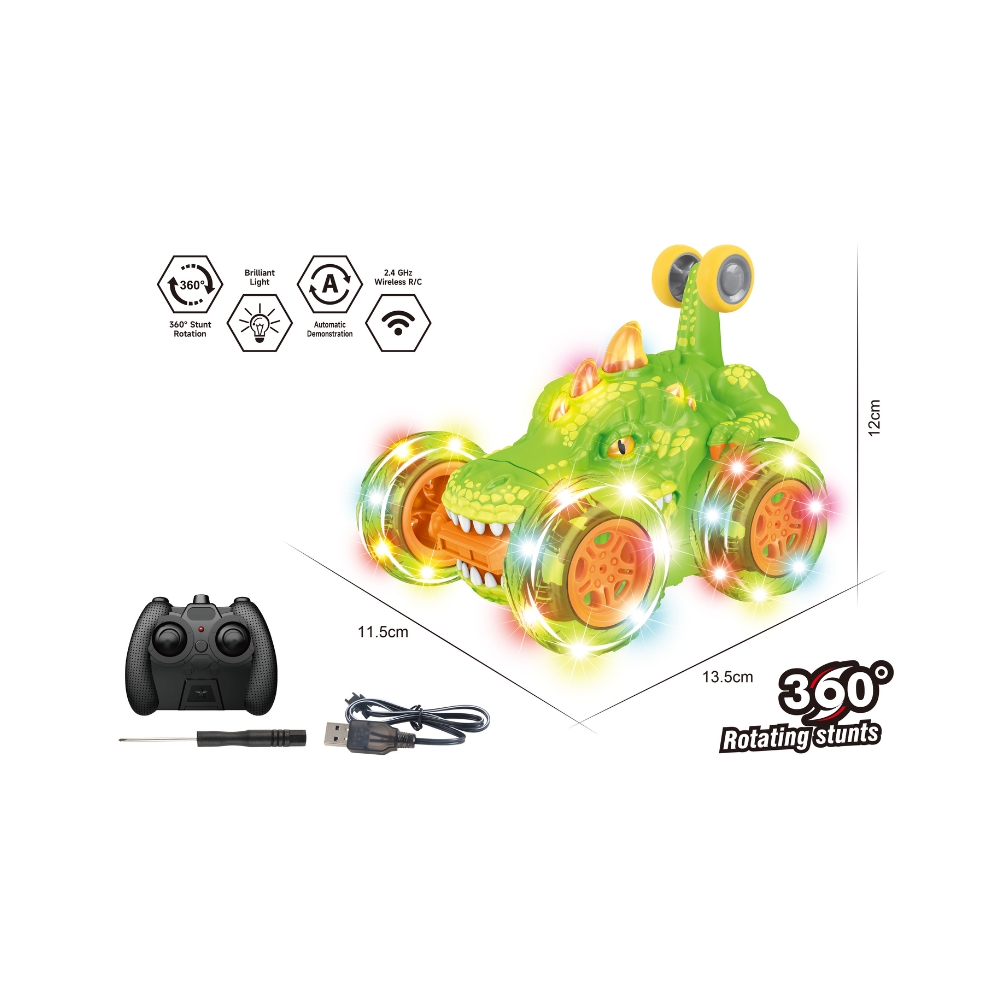 Jucarie Masina Stunt verde cu RC 2.4G, lumini si acumulator, ZJA360961
