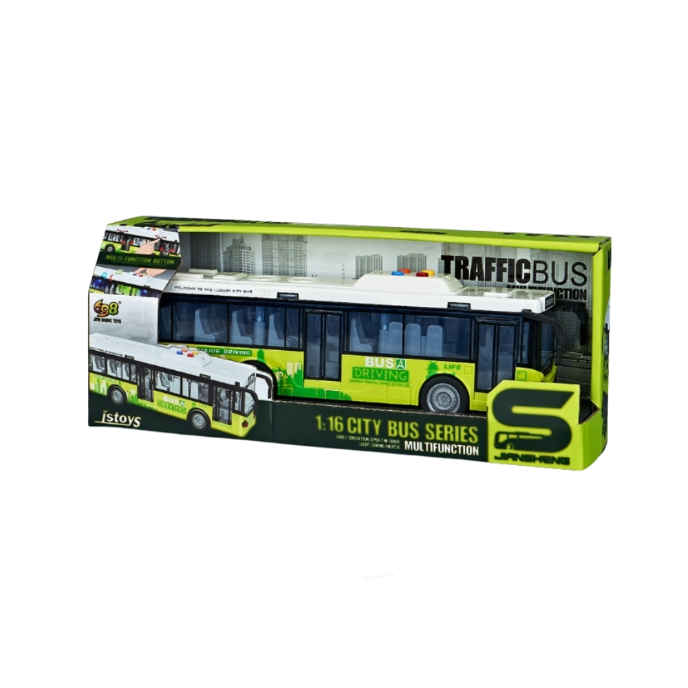 Autobuzul urban cu scara 1:16 este o versiune in miniatura a unui autobuz urban real. A fost proiectat cu atentie la fiecare detaliu, usile se deschid, sunetul realist si anvelopele de cauciuc fac ca distractia sa fie cat se poate de autentica. Autobuzul asigura un mecanism de frictiune, care ii permite sa se deplaseze inainte.