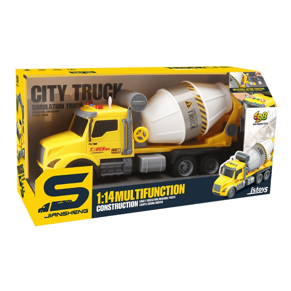 Camion betoniera galbena cu frictiune, sunete si lumini, 1:14, jstoys, ZJA363777